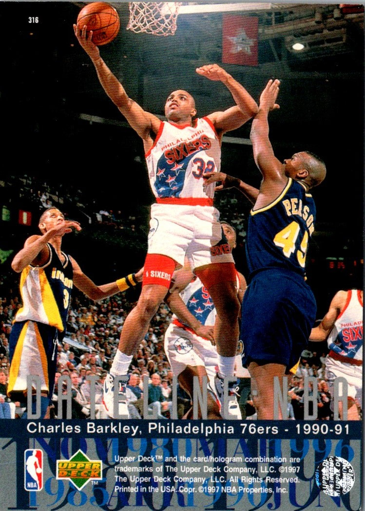 Charles Barkley's 1996 Upper Deck #316 card is a must-have for any basketball fan. This card features a dynamic action shot of Barkley playing for the Houston Rockets while wearing his Philadelphia 76ers jersey. The card captures the intensity of the game, with a powerful expression on Barkley's face. The card is printed on glossy cardstock, with vibrant colors that make it a standout piece. The back of the card features Barkley's bio and career stats so you can get to know the man behind the card. Add this iconic card to your collection today!