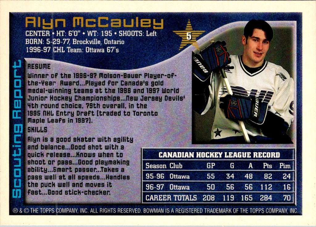 1997 Bowman CHL Alyn McCauley #5