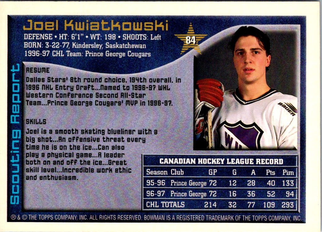1997 Bowman CHL Joel Kwiatkowski #84