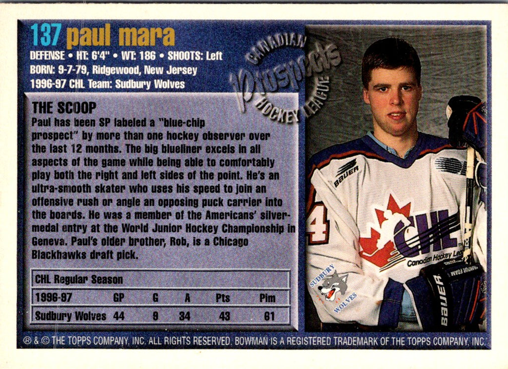 1997 Bowman CHL Paul Mara #137