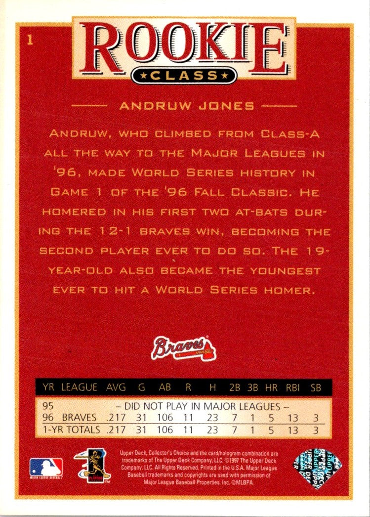 Description: 1997 Collector's Choice Andruw Jones #1