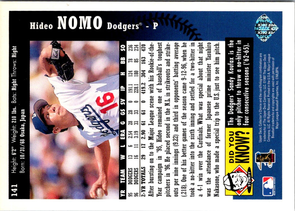 Description: 1997 Collector's Choice Hideo Nomo #141