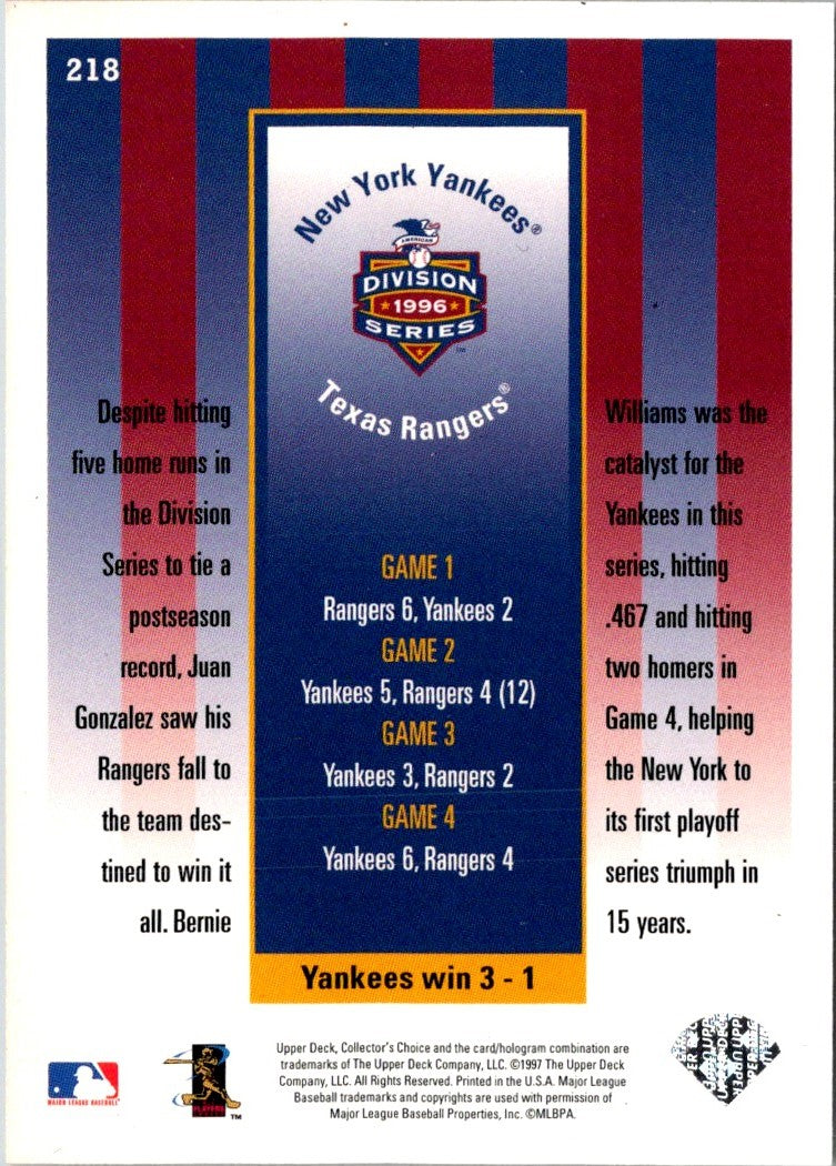 Description: 1997 Collector's Choice Juan Gonzalez #218