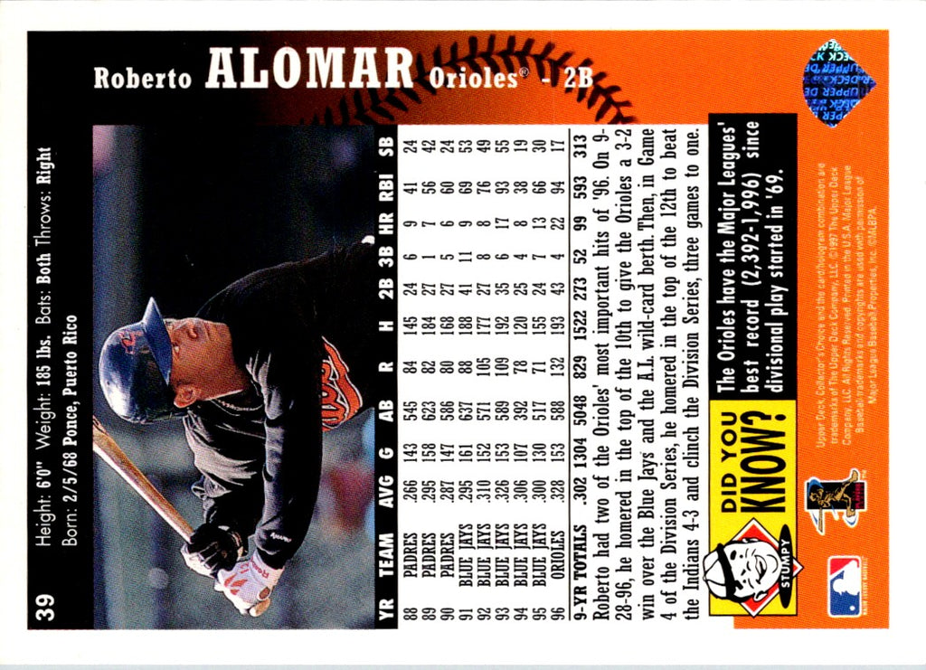 Description: 1997 Collector's Choice Roberto Alomar #39