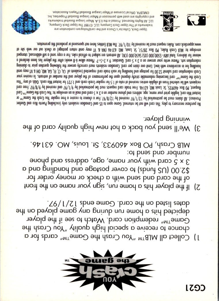 Description: 1997 Collector's Choice You Crash the Game Vladimir Guerrero #CG21