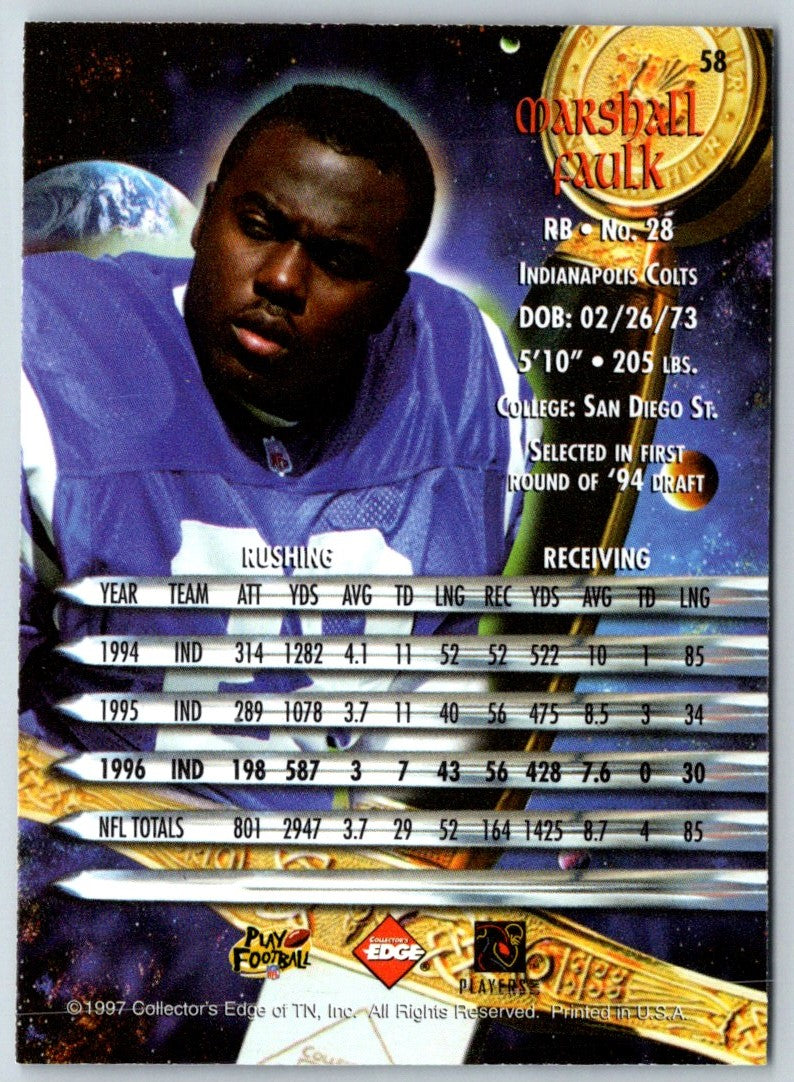 1997 Collector's Edge Excalibur Marshall Faulk #58
