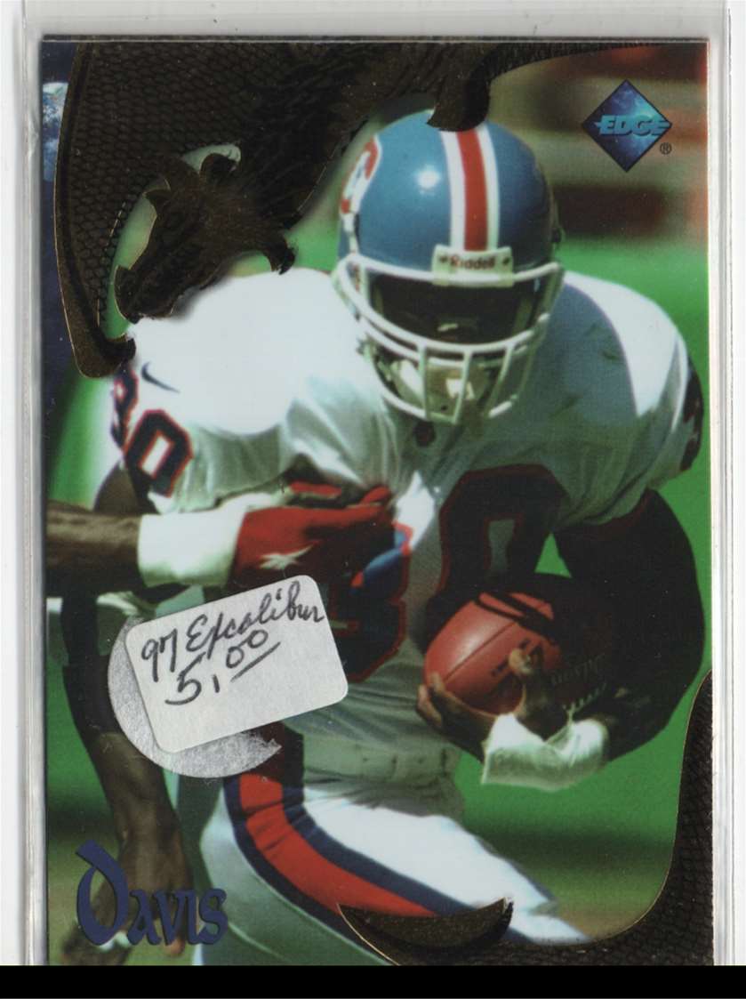 This 1997 Collector's Edge Excalibur Terrell Davis #38 Denver Broncos card is the perfect addition to any fan's collection. This card features a full-body action shot of Davis in his iconic Broncos uniform, showcasing his incredible talent for the game. The card also has Davis' stats printed on the back, making it an ideal way to commemorate the Hall of Famer's illustrious career. Add this card to your collection today and honor one of the greatest players to ever wear a Broncos jersey.