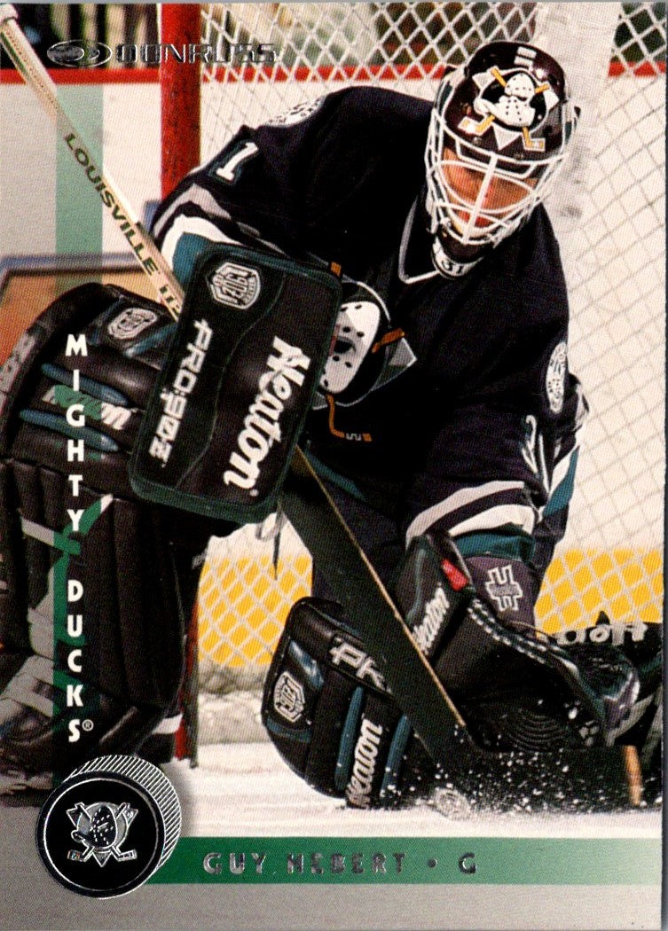 This classic 1997 Donruss card of Guy Hebert #167 from the Anaheim Mighty Ducks is a must-have for any fan of the team. Featuring a full-color image of Hebert on the ice in his Ducks uniform, this card celebrates one of the team's most popular players. Hebert was an integral part of the Ducks' run to the Stanley Cup Finals in 2003, and this card serves as a great reminder of his time with the team. Add this timeless card to your collection today!