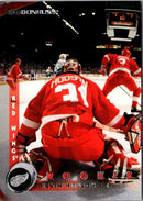 This 1997 Donruss Kevin Hodson #199 Detroit Red Wings card is a must-have for any hockey fan. Featuring the Detroit Red Wings' iconic colors and logo, this card commemorates Hodson's seven seasons with the team. The card features Hodson in a classic goalie pose, with a white jersey and the Red Wings logo emblazoned on the front. A great collectible for any fan of the Detroit Red Wings or hockey in general. Add this to your collection today and show your support for the Red Wings and Hodson!