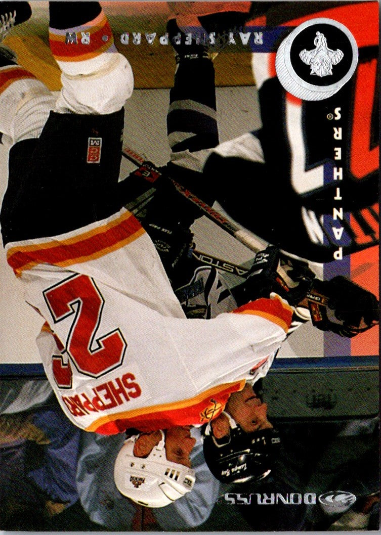 This 1997 Donruss Ray Sheppard card is the perfect addition to any Florida Panthers fan's collection. Featuring a glossy finish, this card captures the power and finesse of the former NHL star in a vibrant and detailed image. Sheppard was the Panthers' leading scorer in the 1996-1997 season, and this card commemorates his impressive performance. Show off your Panthers pride with this classic collectible!
