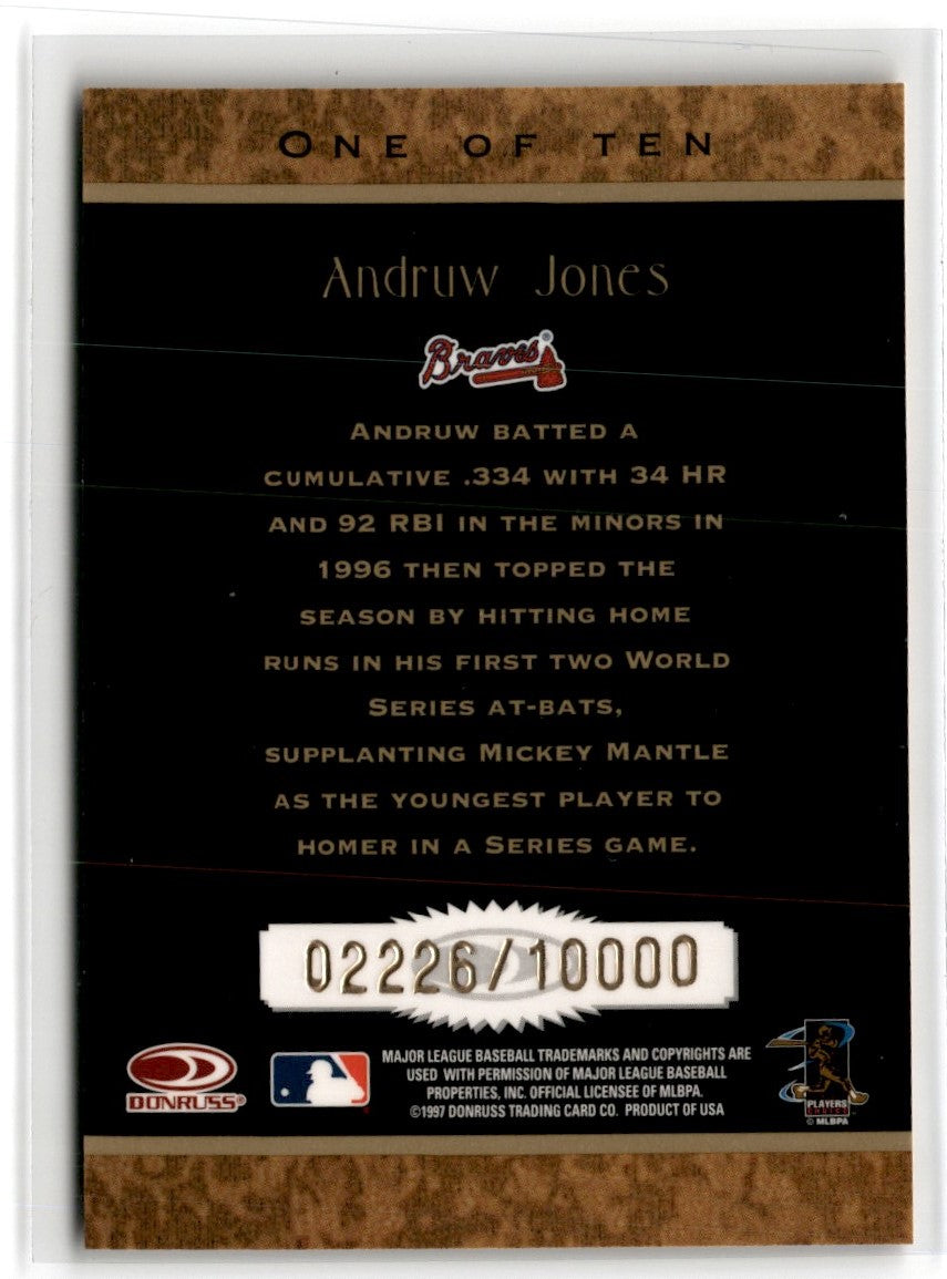 Description: 1997 Donruss Rookie Diamond Kings Andruw Jones #1 02226/10000