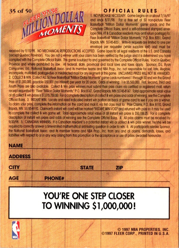 1997 Fleer Million Dollar Moments Horace Grant #35