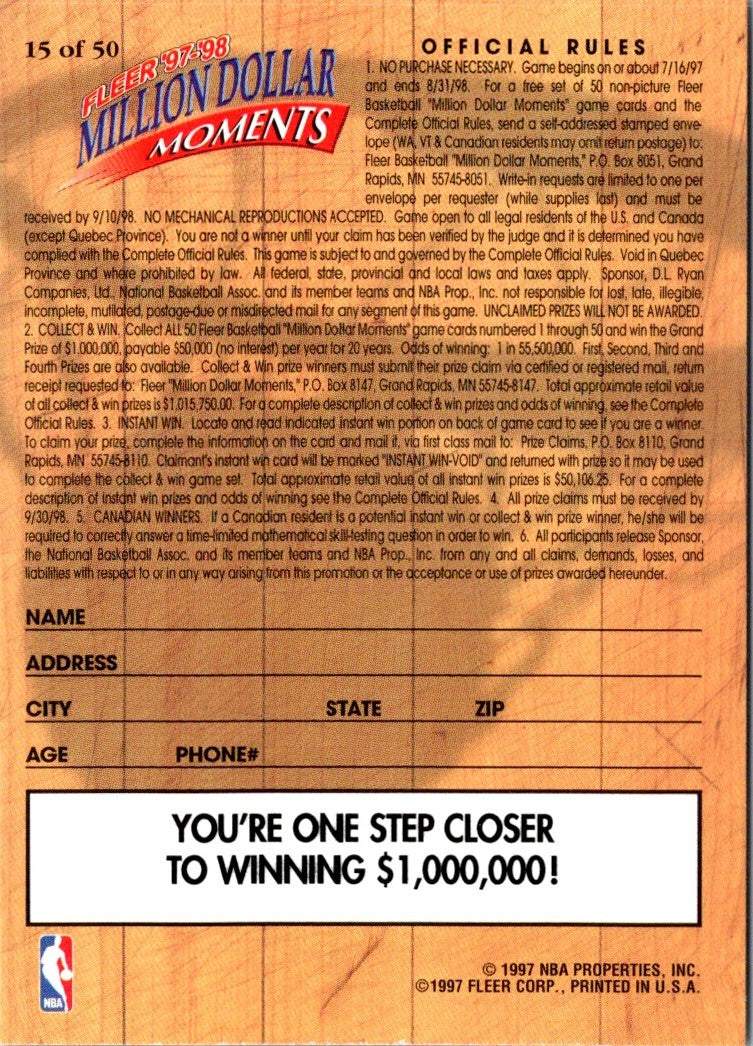 Description: 1997 Fleer Million Dollar Moments Jason Kidd #15