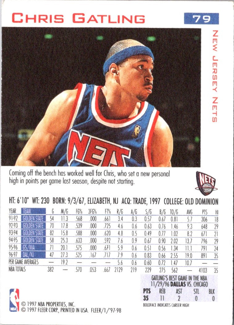 Description: 1997 Fleer Traditions Chris Gatling #79