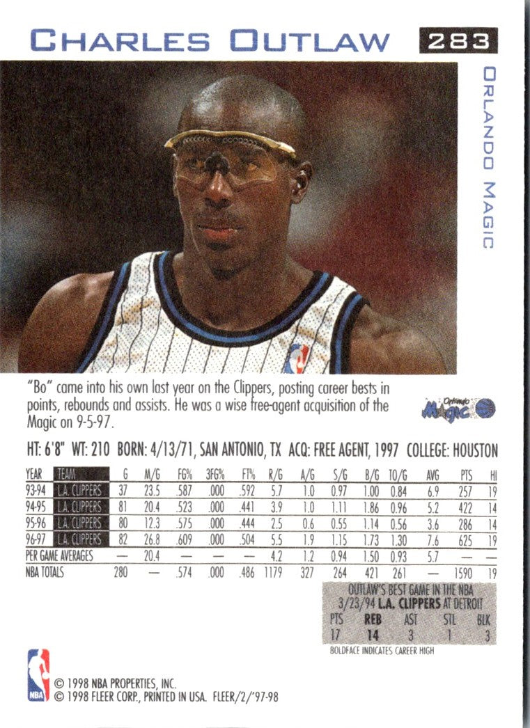 Description: 1997 Fleer Traditions Crystal Bo Outlaw #283