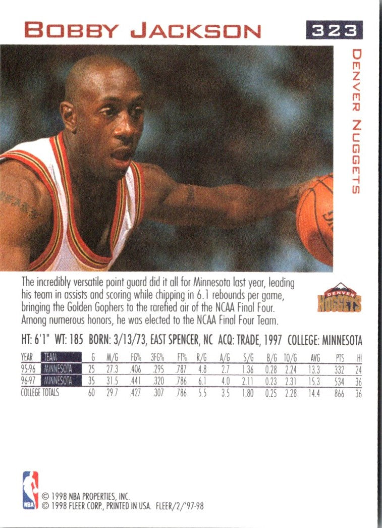 Description: 1997 Fleer Traditions Crystal Bobby Jackson #323