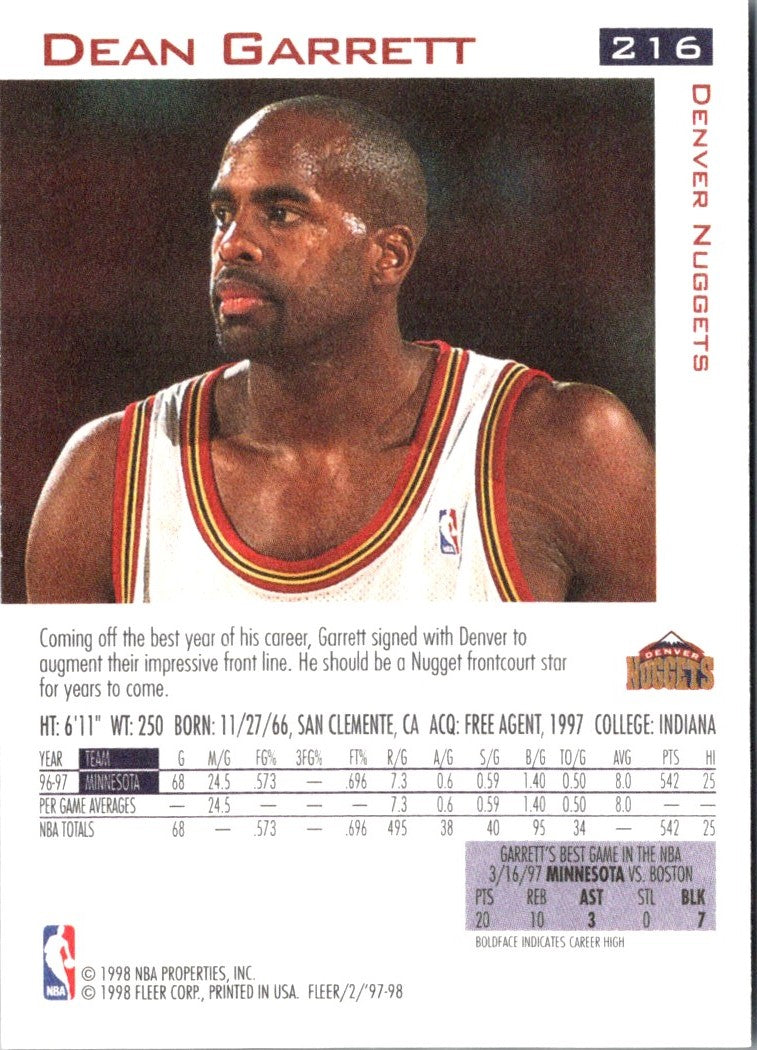 Description: 1997 Fleer Traditions Crystal Dean Garrett #216