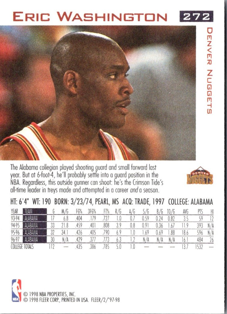 Description: 1997 Fleer Traditions Crystal Eric Washington #272