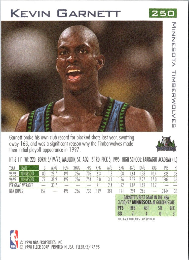 Description: 1997 Fleer Traditions Crystal Kevin Garnett #250