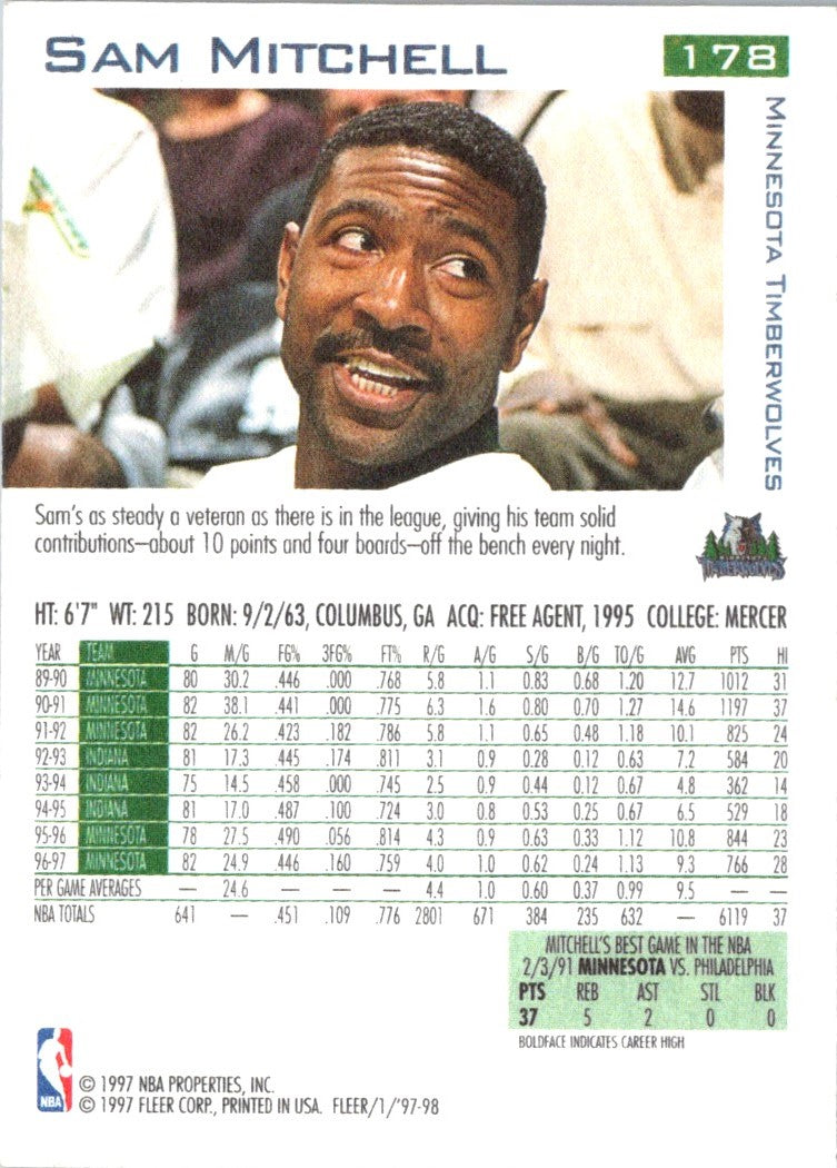 Description: 1997 Fleer Traditions Crystal Sam Mitchell #178