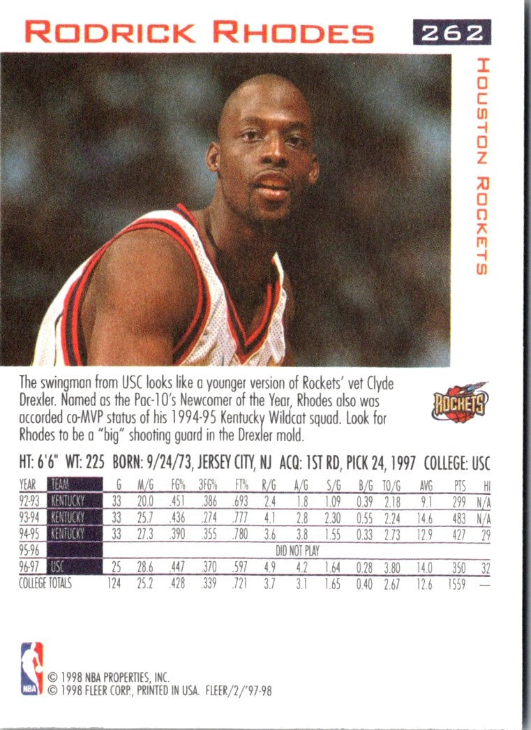 Description: 1997 Fleer Traditions Rodrick Rhodes #262