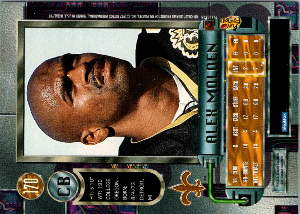 This 1997 Metal Universe Alex Molden #170 New Orleans Saints card is a must-have for any Saints fan. The card features a glossy finish, with a picture of Molden in his Saints uniform. The back of the card offers a detailed look at Molden's stats, achievements, and career highlights. The card is a great way to honor the memory of one of the greatest Saints players of all time. Add this card to your collection to truly show your Saints pride.