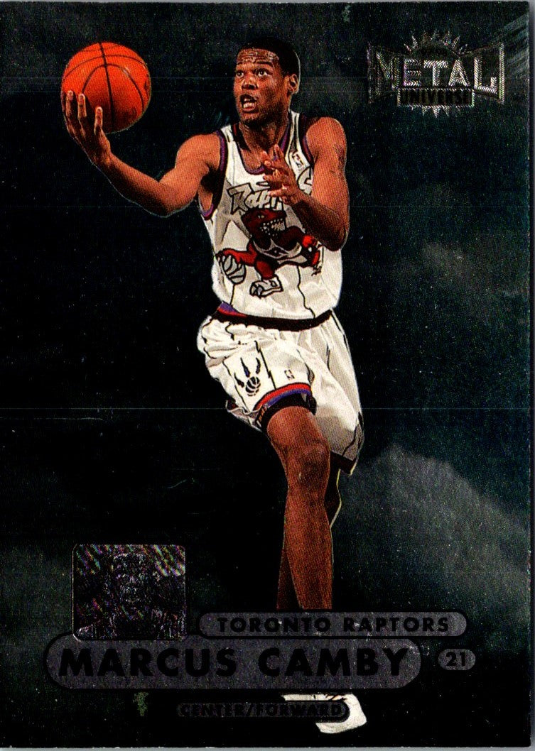This 1997 Metal Universe Marcus Camby #48 Toronto Raptors card is a must-have for any NBA fan. It features an image of the young star in a classic Raptors uniform. His stats are featured on the back, along with a brief biography. This card is in excellent condition and perfect for any collection. Add this timeless piece of NBA memorabilia to yours today!