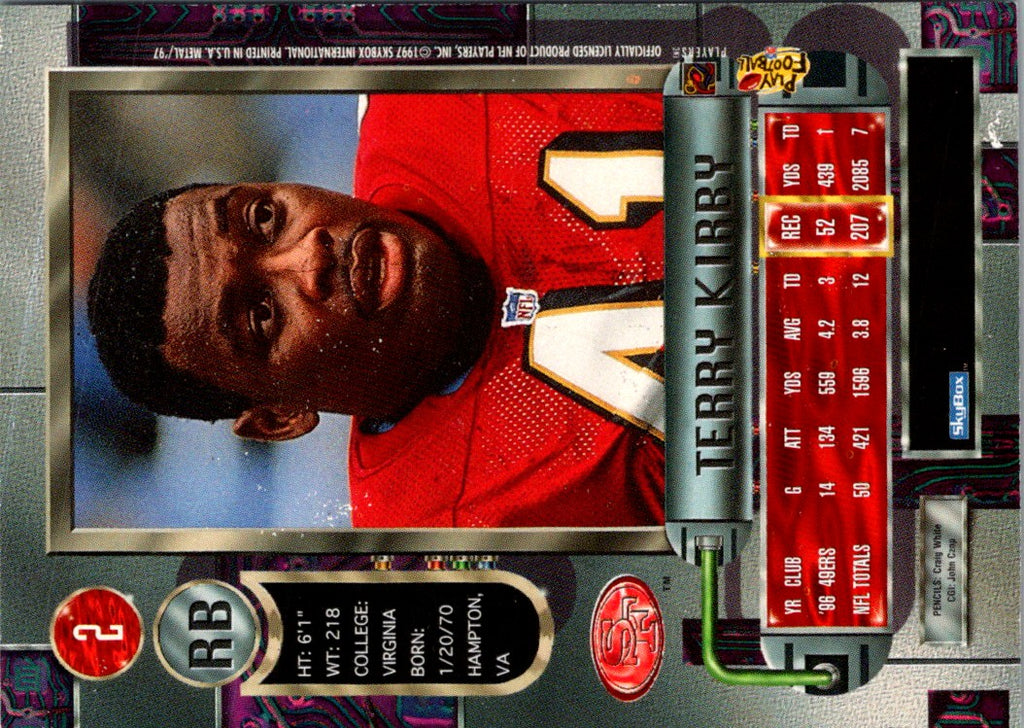 This 1997 Metal Universe Terry Kirby card is a must-have for any San Francisco 49ers fan! Show your team pride with this card featuring the legendary running back in his iconic 49ers uniform. The card is in pristine condition, with vibrant colors and sharp corners that make it the perfect addition to any collection. The card also includes a unique action shot of Kirby, so you can relive his amazing moments on the field. This card is also a great way to commemorate the career of one of the greatest players in 49ers history. Add this gem to your collection today!