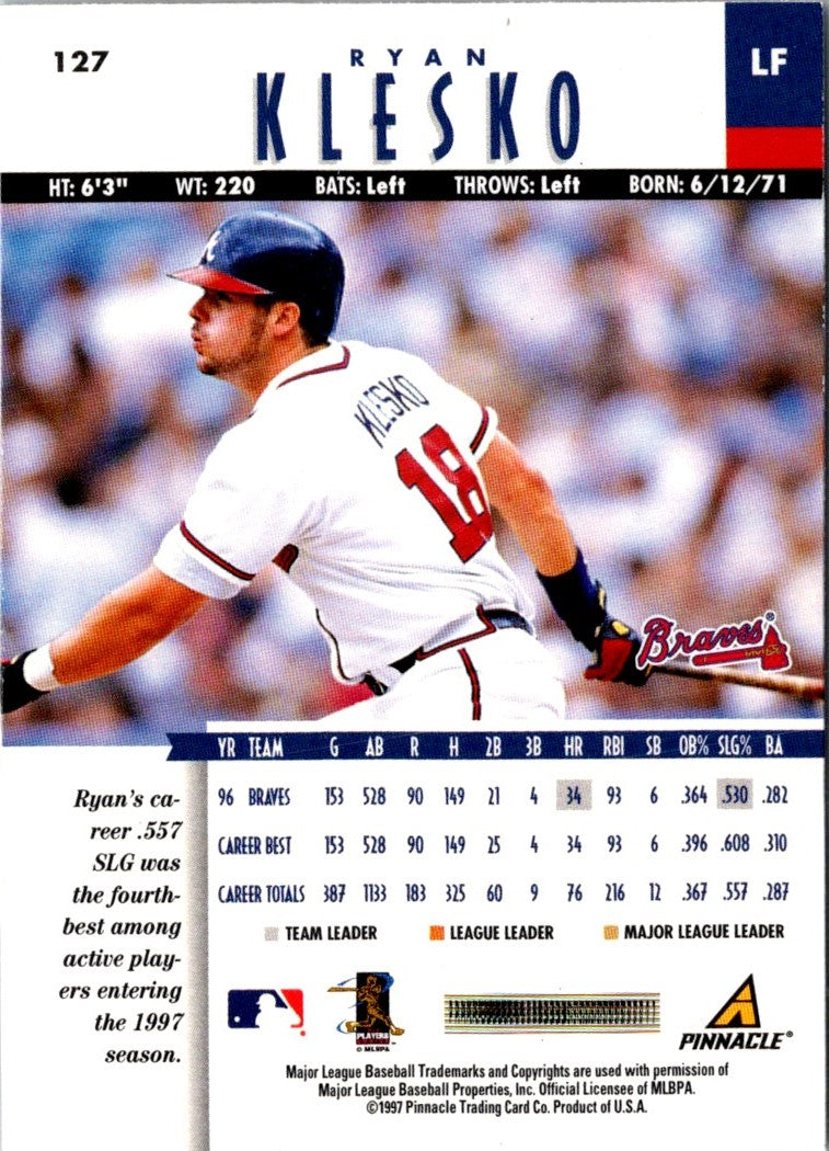 Description: 1997 New Pinnacle Ryan Klesko #127