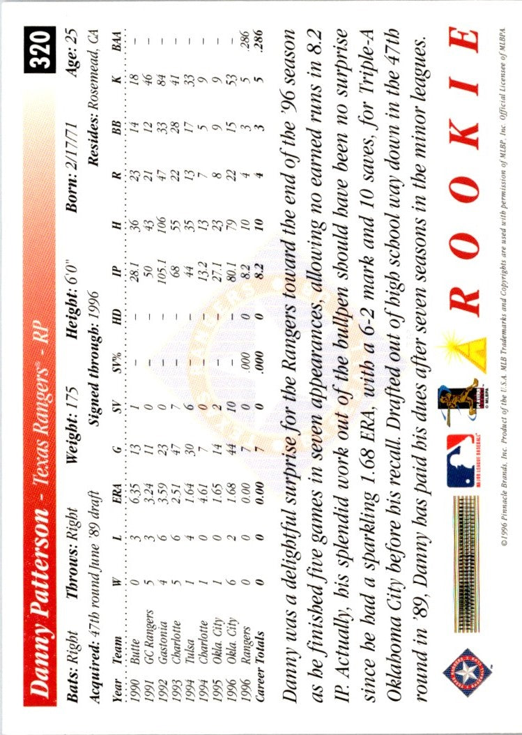Description: 1997 Score Artist's Proofs White Border Danny Patterson #320