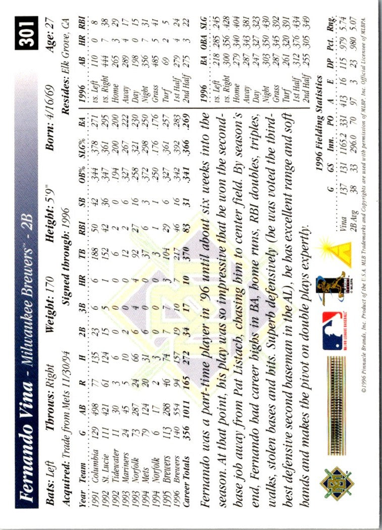 Description: 1997 Score Artist's Proofs White Border Fernando Vina #301