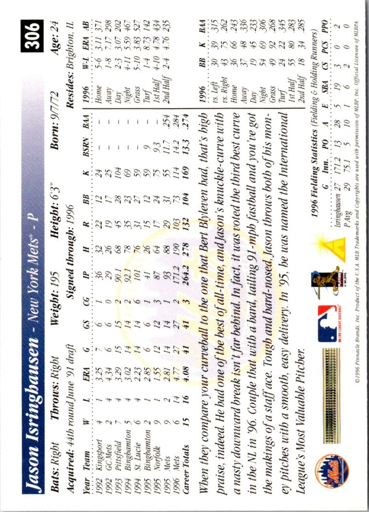 Description: 1997 Score Artist's Proofs White Border Jason Isringhausen #306