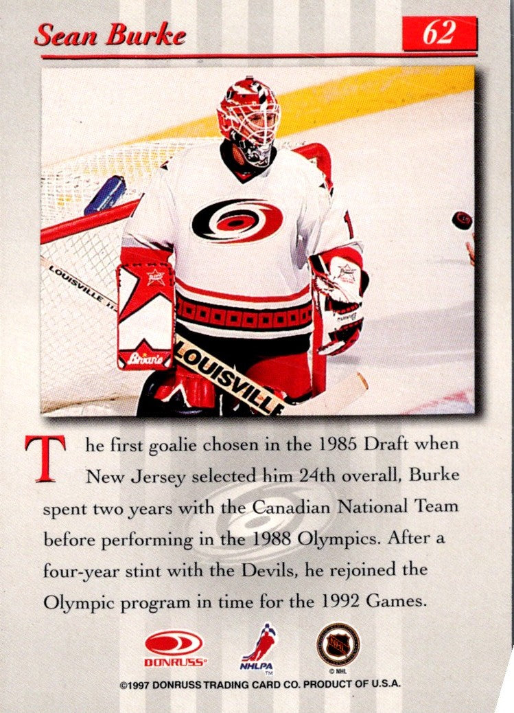 This 1997 Studio Sean Burke #62 Carolina Hurricanes Hockey Card is a must-have for any collector or fan. Featuring a full-color action shot of Burke in his Hurricanes uniform, this card is sure to make a great addition to any collection. Boasting a glossy finish, this card is perfect for framing and displaying in any hockey-themed room or man cave. With a vibrant color scheme and brilliant detail, this card is sure to be a conversation starter in any collection. Whether you're a long-time fan of Burke, or just getting into the sport, this card is sure to be a great addition to your collection.