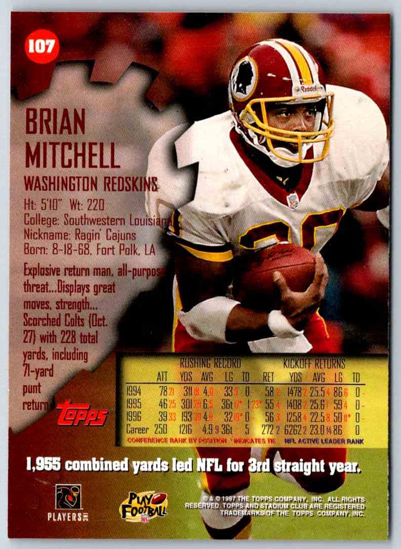 1997 Topps Stadium Club Football Brian Mitchell #107