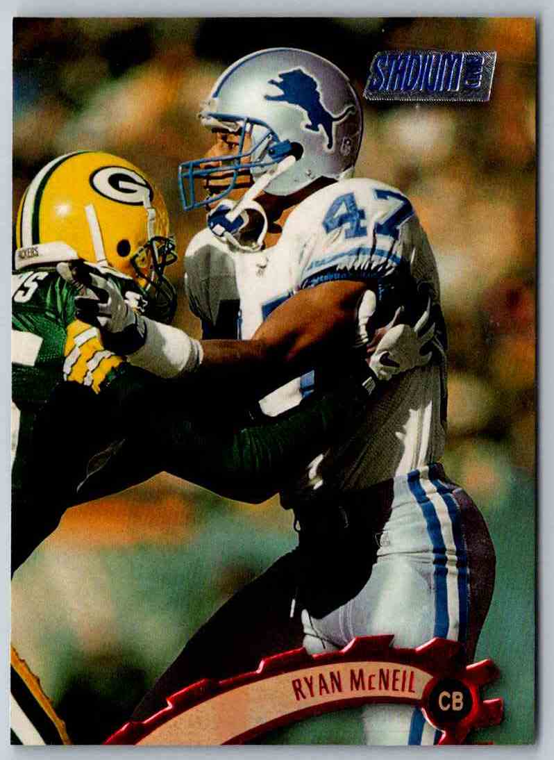 This 1997 Topps Stadium Club Football Ryan McNeil #279 card features a vibrant photo of the defensive back in action. He is captured in the iconic blue and white colors of the Detroit Lions, the team he spent 7 seasons with. The card is printed on high-quality card stock, with a glossy finish that brings out the colors and details. You can almost feel the intensity of the game as you look into McNeil's eyes. A great addition to any football card collection, this card is sure to be a timeless classic.
