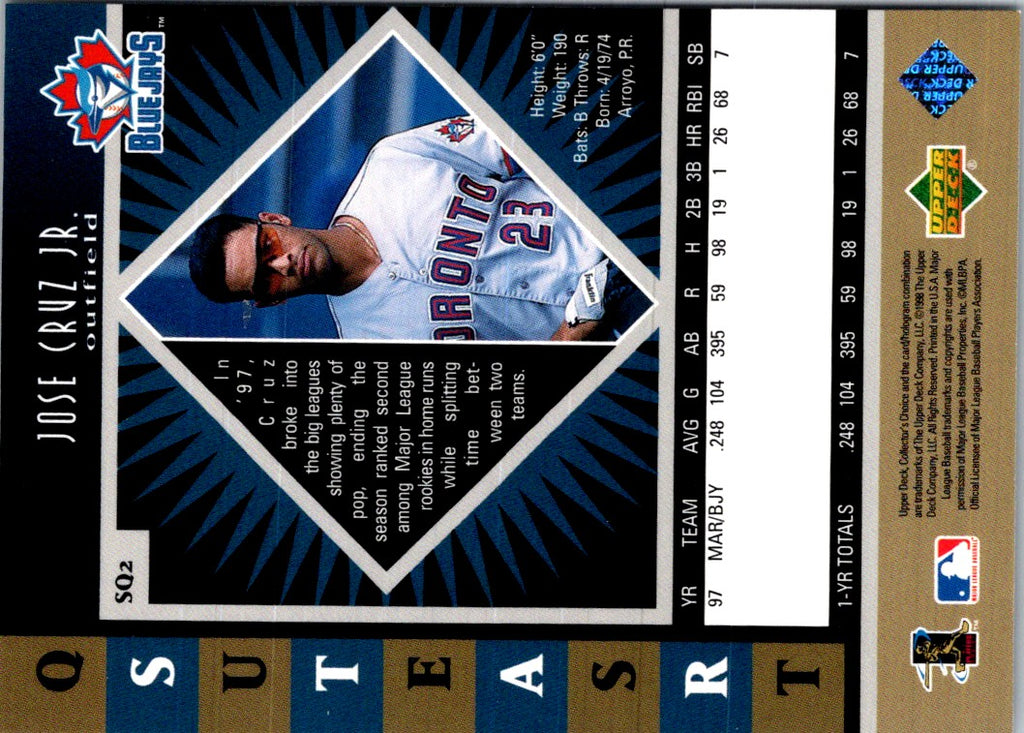 Description: 1998 Collector's Choice StarQuest Single Jose Cruz Jr. #SQ2