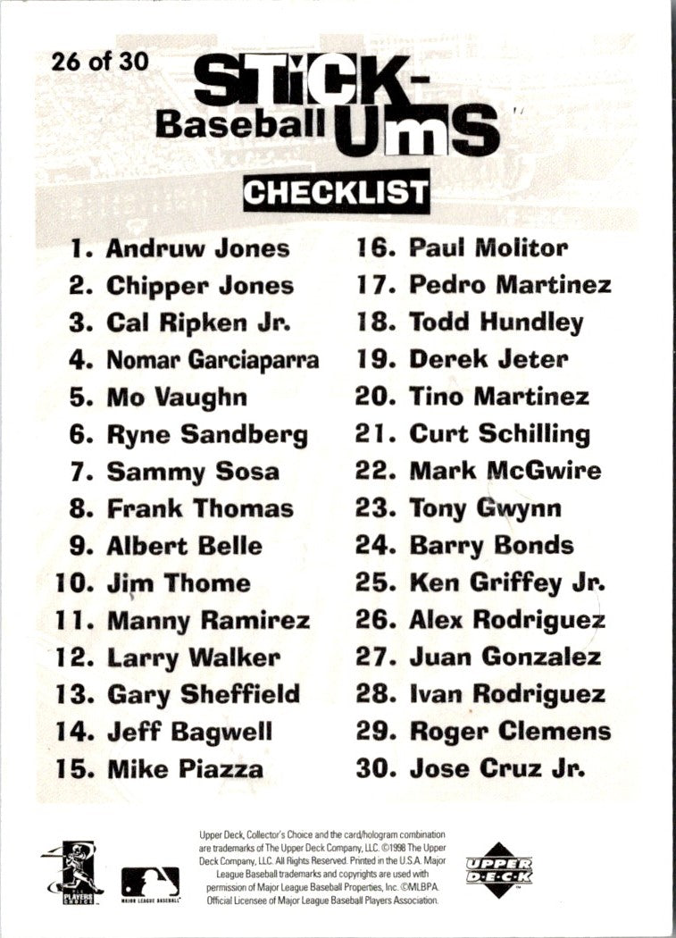 Description: 1998 Collector's Choice Stickums Alex Rodriguez #26