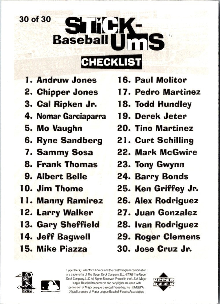 1998 Collector's Choice Stickums Jose Cruz Jr. #30
