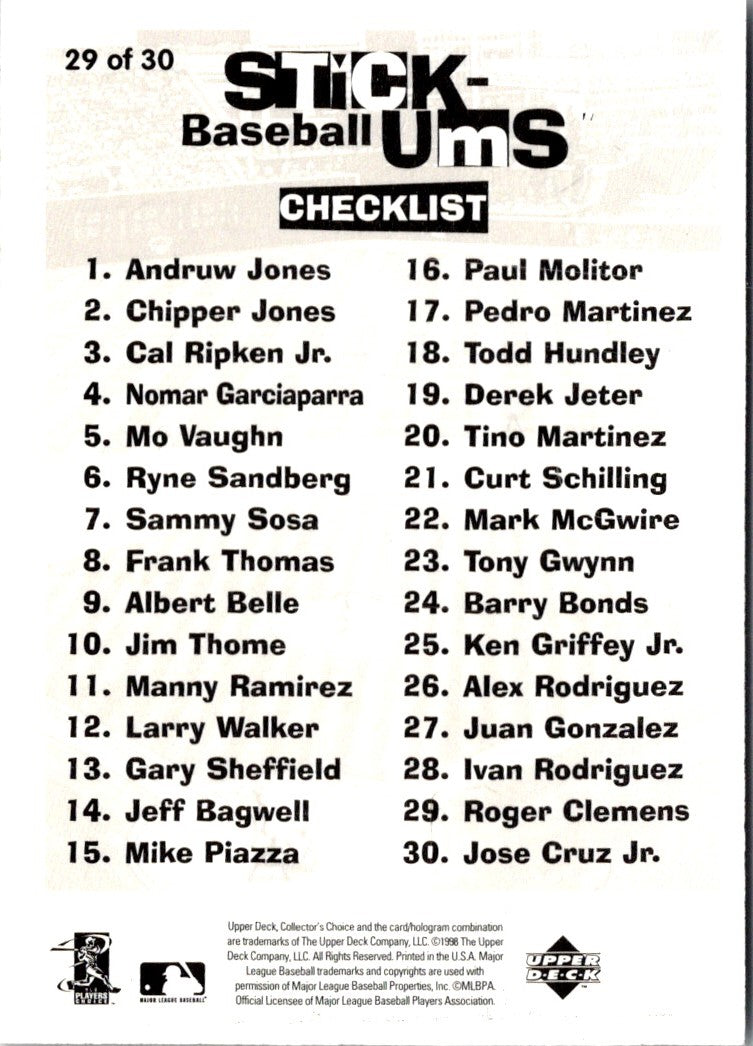 Description: 1998 Collector's Choice Stickums Roger Clemens #29