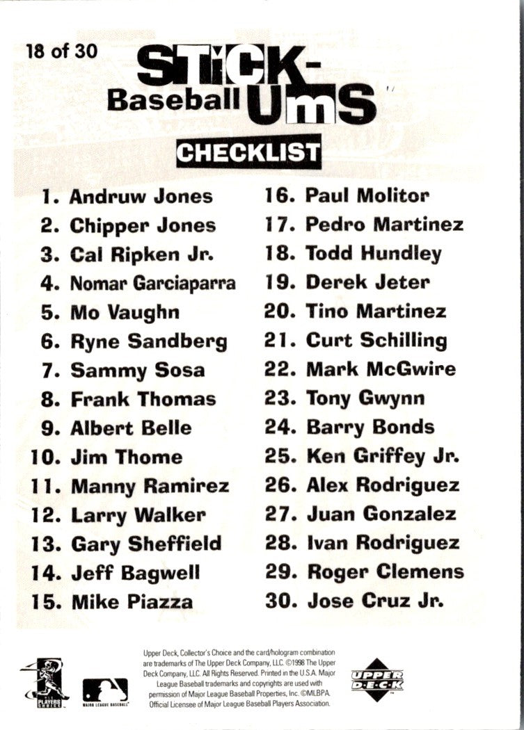 This 1998 Collector's Choice Stickums Todd Hundley #18 New York Mets is sure to be a great addition to any fan's collection. This card features a full-color image of Todd Hundley in his Mets uniform, ready to take the field. The card is in great condition and is a must-have for any Mets fan. This card is a great way to commemorate Todd Hundley's career with the Mets, making it the perfect gift for any fan. Add this card to your collection today and show your Mets pride!