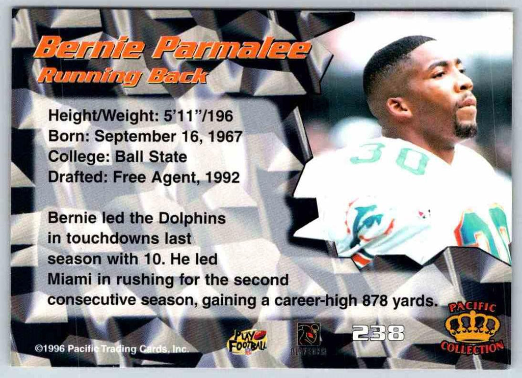 This 1998 Edge Bernie Parmalee #238 trading card is a must-have collectible for any football fan. Featuring a full-color glossy photo of Bernie in action, this card is a valuable addition to any sports memorabilia collection. The card's reverse side features full stats and career highlights of the Hall of Famer, making it a great way to remember and honor this beloved player. With its classic design and detailed information, this card is a must-have for any card collector. Add this piece of football history to your collection today!