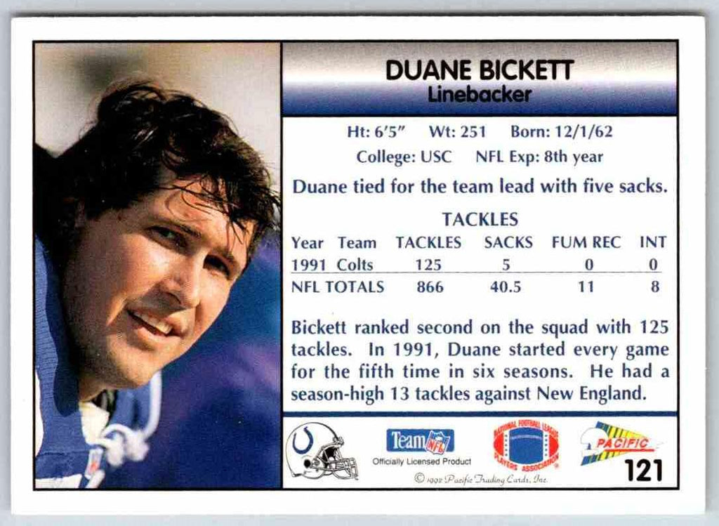 This 1998 Edge Duane Bickett #121 is a must-have for any collector of NFL memorabilia. Featuring a unique design with the player's name and number, it will be the perfect addition to any collection. With high-quality construction and a vibrant color scheme, this card is sure to stand out. It also features detailed information on the player and his career accomplishments, making it a great gift for any football fan. Get your hands on this timeless piece of NFL history today!
