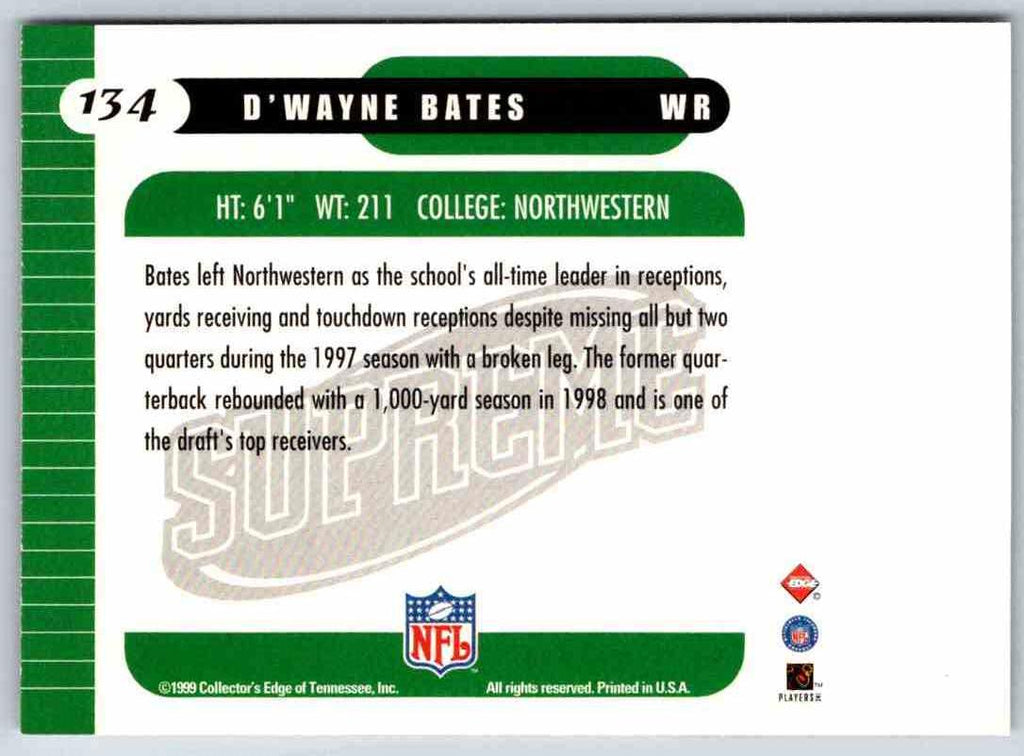 This 1998 Edge D'Wayne Bates card #134 is a classic piece of memorabilia that any collector would be proud to own. The bright colors and high-quality graphics make it a must-have for any Bears fan. The card features a picture of Bates in his navy and orange Chicago Bears uniform, ready to take the field and make an impact. This card is the perfect addition to any sports collection, and a great way to remember an amazing player.