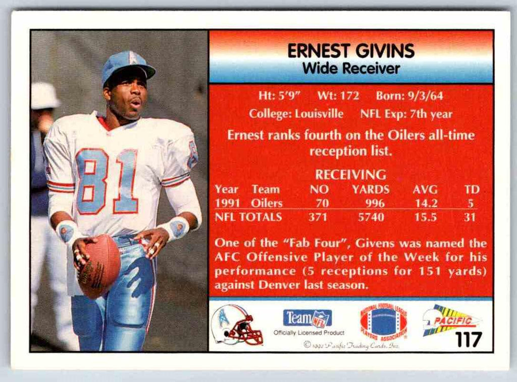 This 1998 Edge Ernest Givins #117 card is a must-have for any NFL fan. Featuring Givins' iconic image, this card captures the Hall of Famer in all his glory. Showcasing vibrant colors and a detailed design, this is a great addition to your collection. With its crisp edges and overall quality condition, this card is sure to be a highlight of your collection. Make sure to add this timeless piece of memorabilia to your collection today!