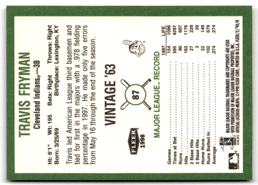 Description: 1998 Fleer Tradition Vintage Travis Fryman #87