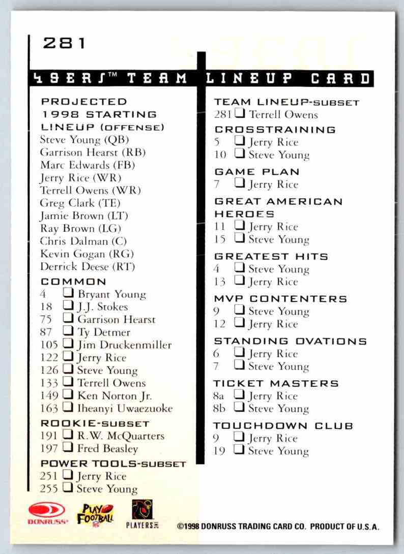 1998 Leaf Rookies And Stars Terrell Owens #281