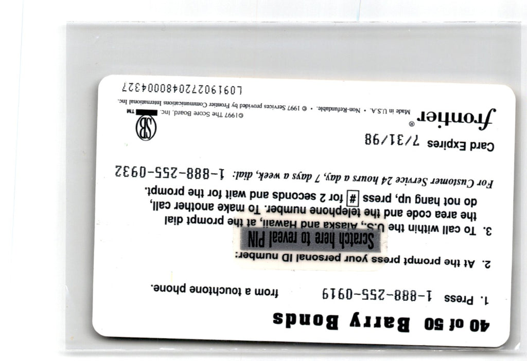 Description: 1998 Pacific Aurora Pennant Fever Barry Bonds #40