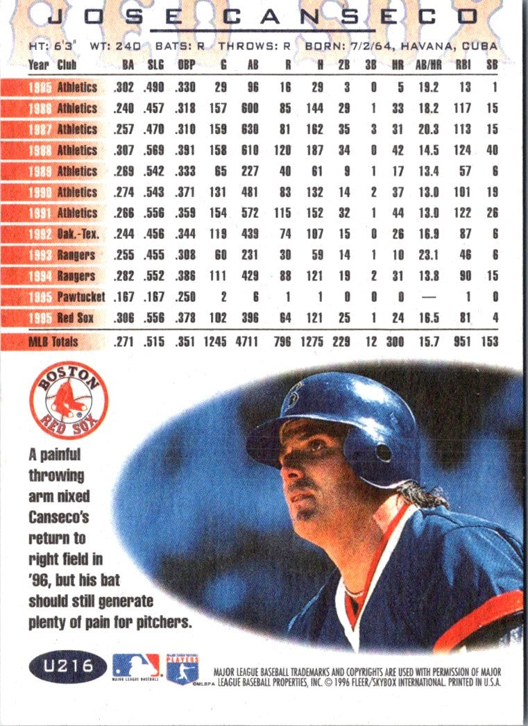 Description: 1998 Pacific Home Run Heroes Jose Canseco #6