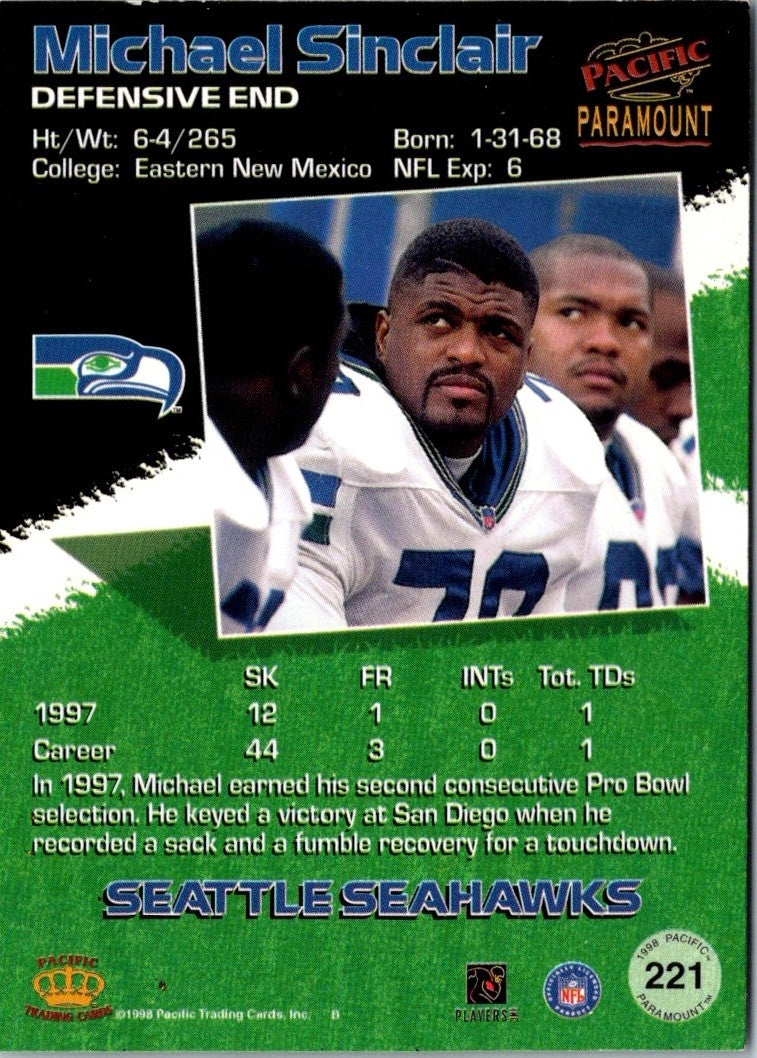 Description: 1998 Pacific Paramount Platinum Blue Michael Sinclair #221