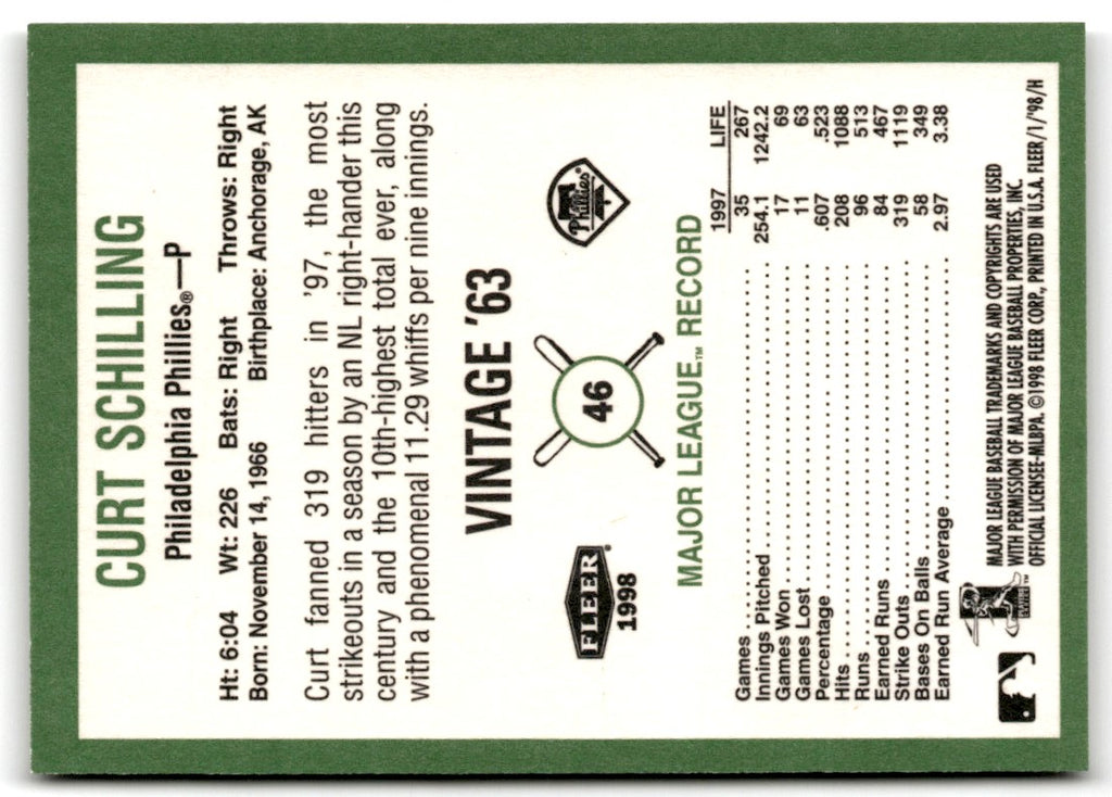 Description: 1998 Philadelphia Phillies Photocards Curt Schilling #NNO